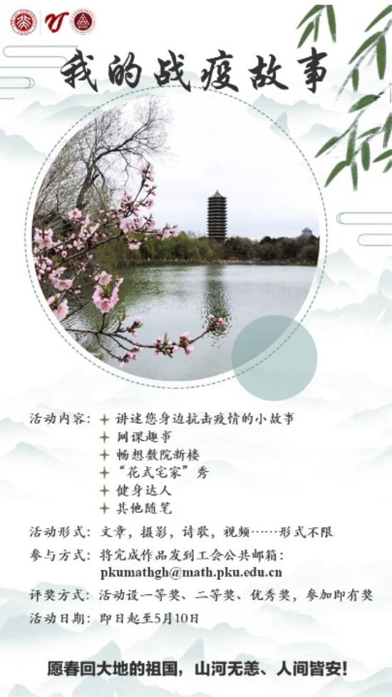 通过此次活动的开展,教职工们记录下点滴感悟,展示了他们的艺术才华并以积极的心态调整好身心状态,以最积极的风貌等待正式开学,等待学生们返校,再次在燕园团聚。