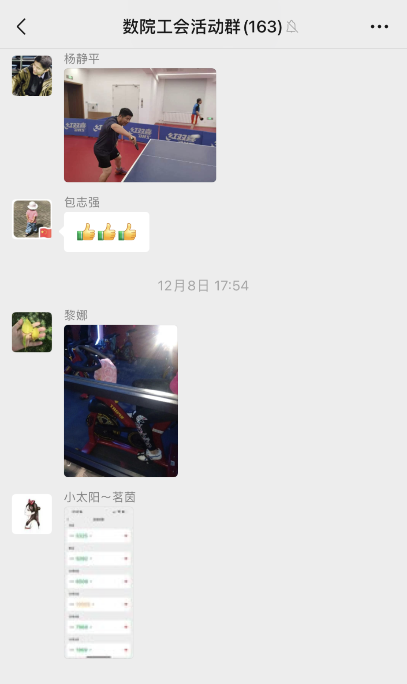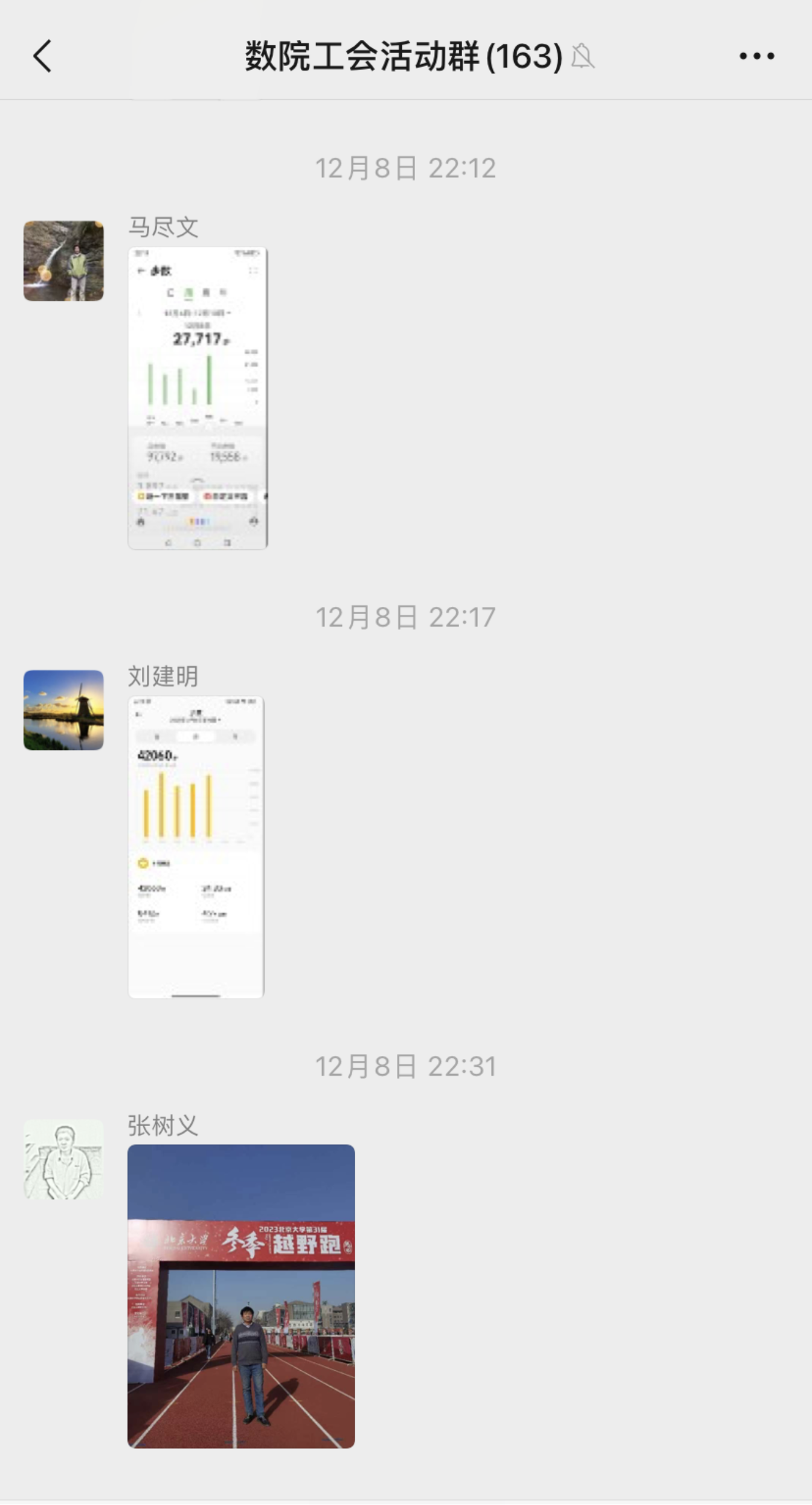 100多名工会会员的踊跃参与,他们将运动的照片或者视频或者健身APP打卡等形式记录分享到“数院工会活动群”或者发送到工会邮箱。
