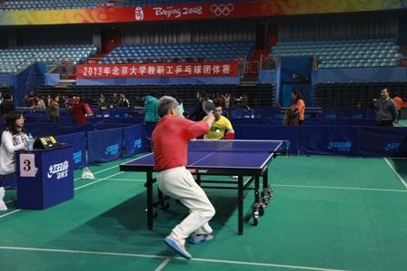 在北大教职工乒乓球男团八强中独占三席,加上签运不佳,数院男团一队和三队被迫在四分之一决赛中提前相遇。尽管三队年轻球员们敢打敢拼,毫不相让;但由于实力存在明显差距,一队兵不血刃地杀入四强,并最终蝉联冠军。