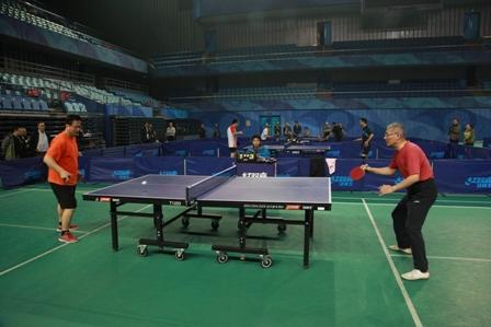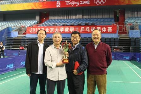决赛中,数院一队的对手是校机关队。刘老师再次率先拿下一分,而蒋老师则遇到了对方选手的强力冲击,并最终不敌对手。关键的天王山之战中,戴波老师稳健发挥了自身水平,用一场胜利为数院一队占据了有利位置。紧接着,刘老师再次登场。面对之前击败蒋老师的对方年轻选手,刘老师充分发挥了经验上的优势,利用缜密的球路和旋转变化,最大程度地克制了对手抢冲抢拉的凶狠打法,并一举拿下对手,继去年决赛之后再次充当了终结者的角色。最后一球尘埃落定时,场边的数院队员和观众禁不住高声喝彩鼓掌。刘老师面带胜利的微笑,与队友们一一击掌庆祝。至尊国际