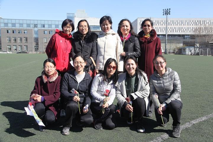 的老师们手持鲜花,在第一体育场草坪上合影留念。巾帼英雄们的笑脸在春日的沃土上尽情地绽放。老师们约定来年还要继续参加这项充满了趣味性和挑战性的赛事。至尊国际