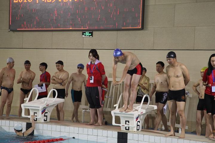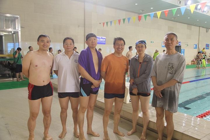 的参赛阵容由活跃在教学研究岗位上的一线教师组成。尽管科研教学任务繁忙,但他们仍然坚持游泳健身。在这块蔚蓝的泳池中,日常总少不了他们披波斩棘的身影。平日的不懈锻炼所带来的成果,在本次比赛中得到了充分体现。周蜀林老师在男子C组50米和100米蛙泳比赛中分获亚军和季军。另外首次参赛的颜军老师也在男子B组50米仰泳比赛中获得季军,同时在男子B组50米蛙泳中拿到名次积分。李铁军老师和张树义老师在男子C组50米仰泳比赛中并肩作战,分获季军和第四位。李治平老师也在男子D组50米自由泳比赛中得到第五名。