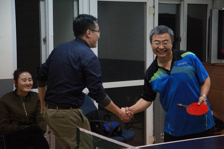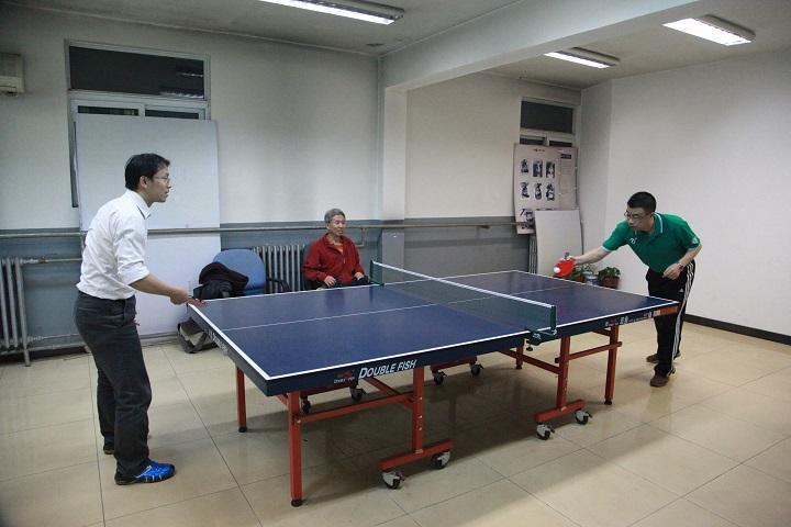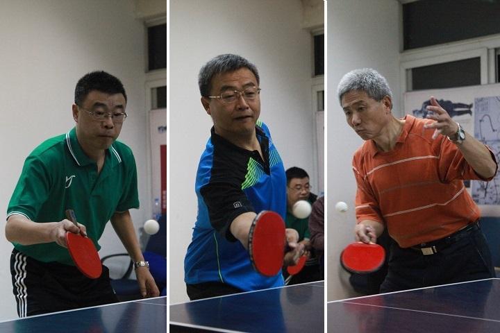 数学中心队在图书馆西侧活动室内,与去年的八强队伍实验室与设备管理部一队展开较量。对方同样有多位主力未能前来。李治平教授首场取得速胜。王福正教授在第二场比赛中遇到对手的顽强抵抗。面对对方的坚决起板强攻战术和多次擦边擦网的运气球,王老师逐渐通过多变的战术控制住了场上局面,稳稳拿下三局比赛。三单战中,徐茂智教授也上演了本次团体赛的首秀,与李老师一样大比分获胜。