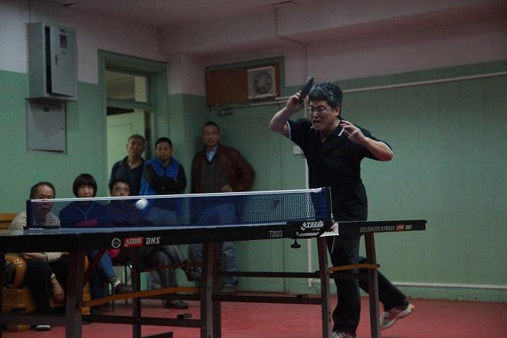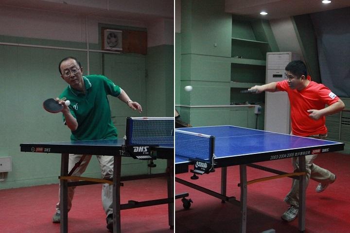 数院二队率先出战,由杨建生教授担任先锋。对手张宇伟老师几十年前曾在全国少年赛中拿过名次,虽然近年来转战网球场,但功底犹在,球路长短和方向变化多端。杨老师开局非常不适应,很快以4:11输掉第一局,第二局又一度以5:9落后。此时杨老师反而卸下了包袱,坚决贯彻自己的战术,一球一球地咬,一分一分地拼,反而一口气连得六分,以11:9把局分扳平,也彻底扭转了比赛的气氛。尽管张老师第三局占得先机,率先取得领先优势并以11:7获胜,但杨老师并没有受到太多影响,见招拆招,又以11:7回敬一局。关键的决胜局,杨老师气势全开,进攻坚决果断,势大力沉,屡屡得手。而张老师则有些犹豫,失误较多。杨老师以11:5拿下此局,为球队取得开门红。柳彬教授次战登场,对阵王勇老师。柳老师的实力占优,进攻正常发挥,越打越顺,以递增的分差直落三局获胜。数院二队至此与八强仅有一步之遥。