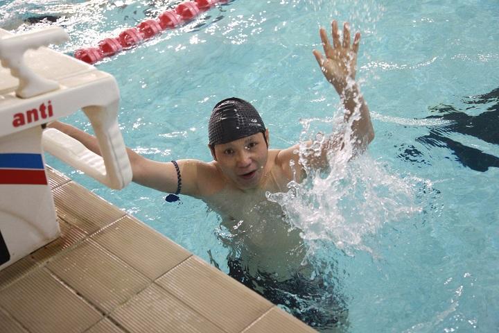 泳坛“老将”周蜀林老师升组参加了男子D组的50米和100米蛙泳两项比赛。男子D组的竞争比C组更激烈,周老师竭尽全力,最终分获第5名和第3名。“我已经很满意了,”周老师如是说。