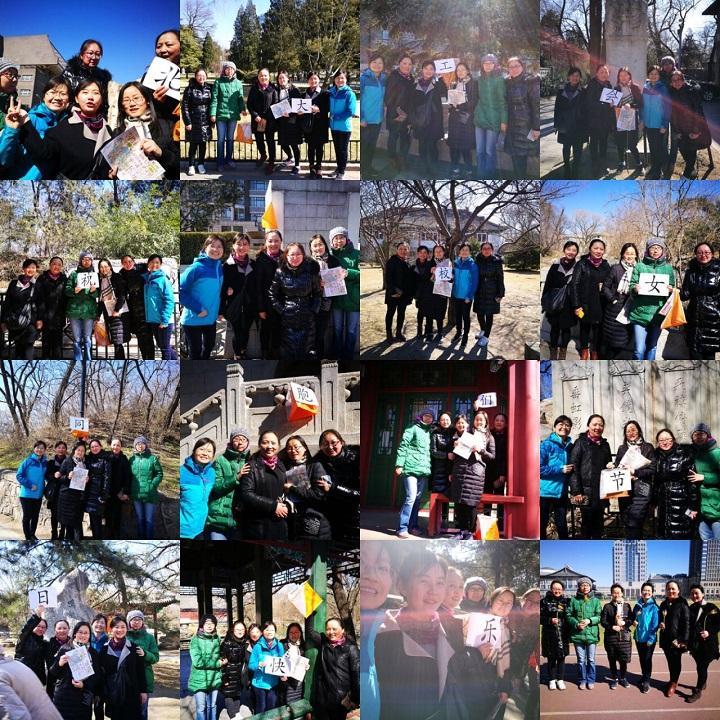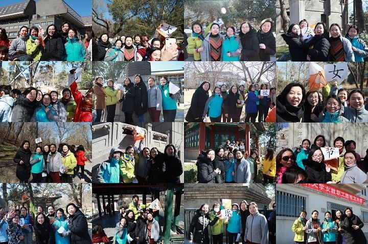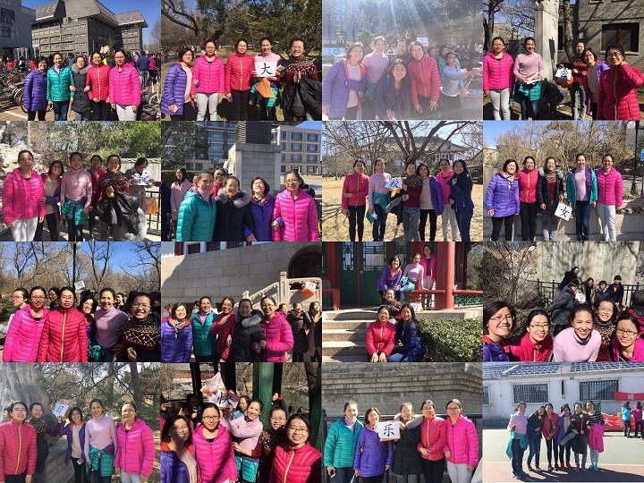 女教职工在春日的燕园中留下秀丽的风景和美好的记忆。