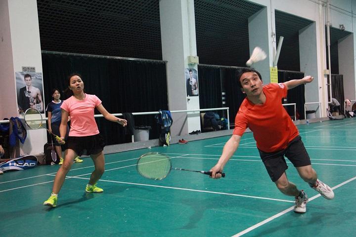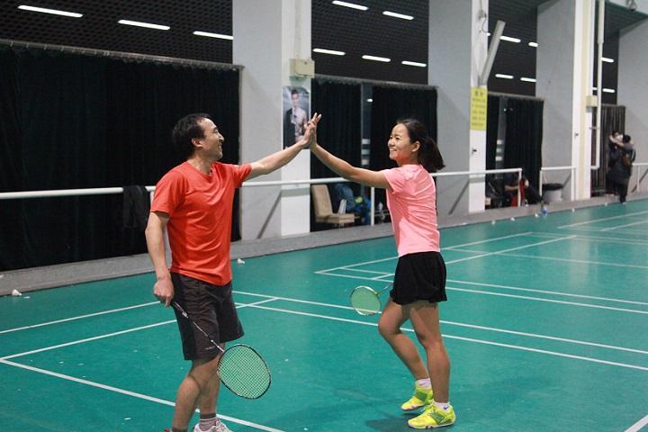 半决赛中出现了两对混双组合。除了邓老师/陈同学以外,张磊老师/谢玙同学也杀入四强。尽管对手都是男双组合,但两对混双都打得虎虎生威。邓陈组合默契配合,充分发挥了个人水平,以21:18将“马队”拒之决赛大门外。而张谢组合同样拼尽全力,不过还是功亏一篑,以18:21不敌杨老师/张同学组合。