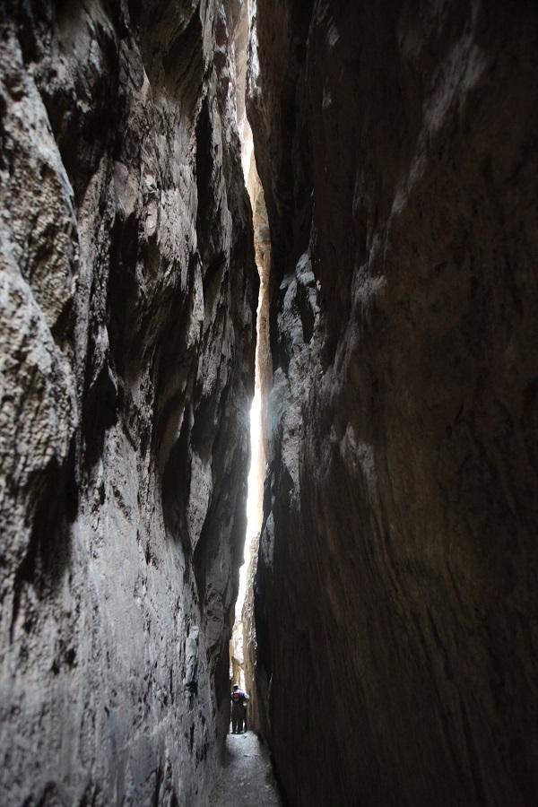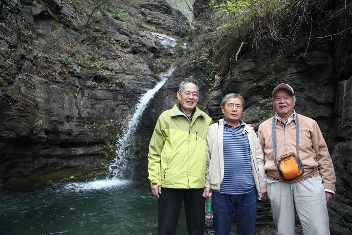 行至中途,大家兵分两路,一路择旁支瀑布群而上攀,一路则依大河谷继续前行。瀑布一侧起初是较为平缓的层积岩,但拾级而上不久后便“图穷匕见”,陡峭而坎坷的石级盘旋谷间一路上行,这对于攀者的体力和意志都是极大的考验。大家彼此鼓气,奋力向前。辛勤的努力换来了丰厚的回报,在攀登上千层台阶的过程中,沿途的景色令人目不暇接。由层叠岩层上潺潺流淌的清流,到转角后从二十多米高处骤然飞泻而下的水幕,再到仰立于路前的山涧中如银带般撒下的绵长白浪,无不吸引着大家驻足拍照留念。山谷的尽头是一潭碧池,其上仍有一股涧水源源注入,水花四溅,令人顿觉由内而外的清凉。令人钦佩的是,多位年逾七旬的老教授也顽强地登上了山谷顶端。回首俯瞰绵延苍茫的大峡谷时,一位老教授不禁吟起宋代著名词人范仲淹的名篇《渔家傲?秋思》: