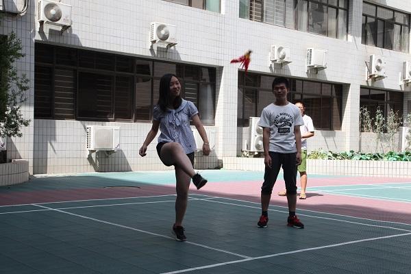 首次设立,绝大多数同学之前没有毽球比赛的经验。经过比赛组织方的介绍,大家逐渐理解了比赛规则。于是,比赛就从“混沌”状态下开始了。在轻松的心态下,在“以赛代练”的过程中,大家的毽球水平飞速提升:从一开始的各种发球失误,到后来的稳定发球入界,精彩攻防回合也屡屡出现。几位女队员的表现尤其抢眼,往往被视作“最弱一环”的她们,经常通过发球直接得到分数,令人戏称“得女将者得天下”。