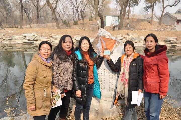 五个点找下来,老师们已经轻车熟路。大家便沐浴在初春的阳光下,一路欢声笑语地完成后面的“燕园再发现” 之旅。蔡元培雕像、校史馆东纪念碑、勺海亭、勺园食堂、瓦洛里楼广场、静园草坪、哲学楼长廊、老生物楼西北角、伟利楼西……不知不觉,找到的标志点远超过了十个。大家在第一体育场南门处的标志点完成了最后的合影登记,为这次近一个小时的燕园漫步画上了完美的句号。