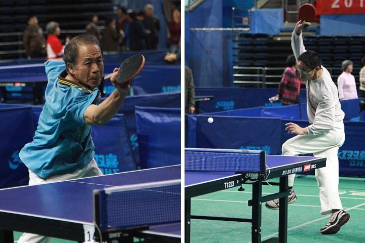 相比于二队的前四,数学三队的第五则是一大惊喜。四分之一决赛,外界普遍认为北大附中队可以轻松获胜,但数学三队的表现硬是惊出对方一身冷汗。首盘唐林老师出阵对战阳老师,0:3败北没太多悬念。次盘70岁的郭懋正老师出马,3:0脆胜李老师。三单杨静平老师稳字当头,3:1胜王老师。第四盘比赛郭老师同样不敌阳老师。最后一盘比赛,唐林老师在实力较对方李老师有一定差距的情况下,将自己强冲强拉的特点发挥得淋漓尽致。他首先用力量大旋转强的发球力拼对手,虽然多次直接出界,但更多次造成了直接得分。相持过程中,他又多次抢先上手进攻,硬生生从对方手下拼到了第一局和第三局。虽然唐老师最终还是因为发挥不稳定而以2:3失利,但他精彩的表现博得了场下观众的赞赏。