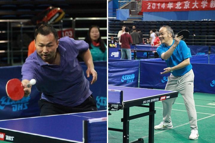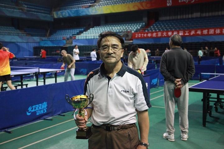 队。郭老师出任一单,轻松横扫王劲松老师。第二盘杨老师1:3不敌曹安源老师。徐茂智老师三单登场收到奇效,3:0战胜蔡庆东老师。第四盘比赛中,郭老师沉着冷静,以11:9,14:12和12:10的“最小2分差”力克曹老师,助数学三队以3:1战胜对手,获得本次赛事的第五名。这也创造了数学三队在北大乒乓球教职工团体赛上的最佳战绩。
