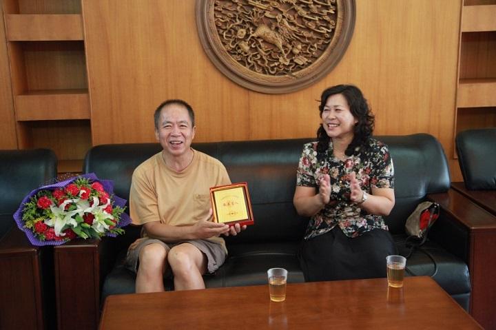 9时30分,孙丽一行来到理科1号楼1366会议室,与教师代表谭小江亲切握手并献上鲜花。她代表校工会对至尊国际