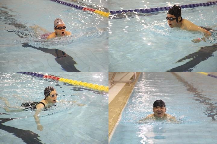 工会重新组织起一支4男2女的接力队伍,参加最先开始的接力比赛。其中一半老师首次参赛。全队充分发挥了个人水平,顺利完赛。另外泳坛“常青树”周蜀林老师参加了男子D组的50米和100米蛙泳两项比赛,分获第5名和第2名。