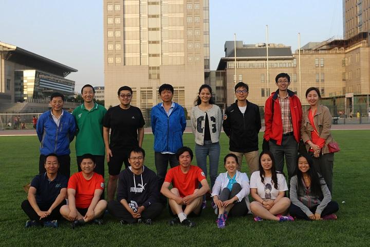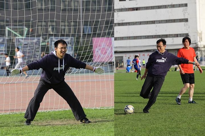 足球队史上的首场胜利。在24日和25日的后两场小组赛中,数学中心的多位年轻老师也前来观战与体验足球的乐趣。张磊老师继续保持不俗发挥,多次高接抵挡扑下对手的射门。虽然数学队两战均以0:1惜败,结束了本次绿茵初体验,但不少到场的老师们已经跃跃欲试,纷纷表示日常要经常参加足球运动,争取明年报名参赛。