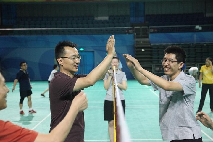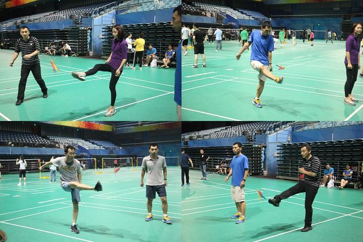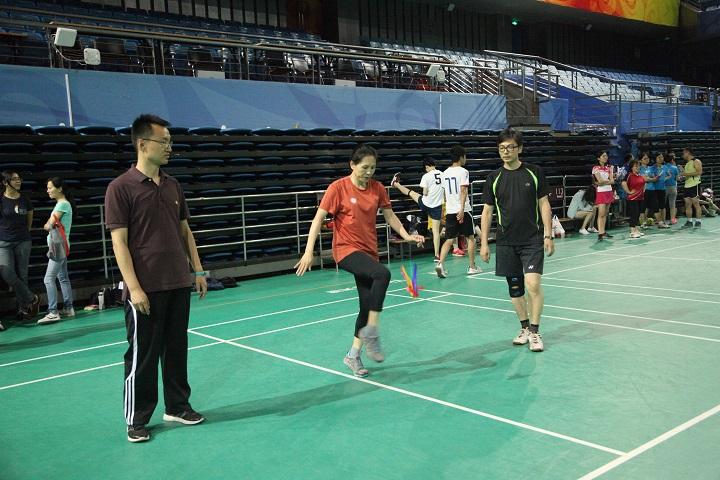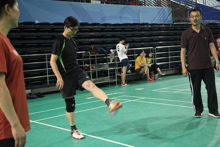 数学一队的新生力量张磊教授首次参加毽球比赛,就充分发挥了自己身为至尊国际