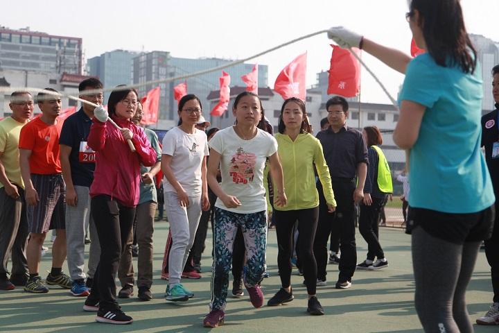 党委副书记兼工会主席孙赵君、党委副书记董子静等党政领导带头参与各项团体项目赛事。尽管由于平日工作繁忙缺乏训练,但数院教工在工会副主席郑春鹏老师的悉心指导下,利用赛前有限的时间完成了卓有成效的练习。数院教工在动力火车和袋鼠跳接力的男女四项赛事中齐心协力,全部进入前八名,拿到了名次积分。另外数院还在团体跳绳和4*400米混合接力中憾居第9位,在团体台阶比赛中位居并列第10位。这次团体项目全面开花,是数院近十年来在团体项目中的最佳表现,也助数院团体总分较去年有了10分的进步。