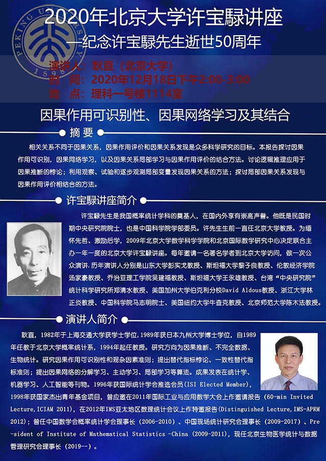 2020年北京大学许宝騄讲座——因果作用可识别性、因果网络学习及其结合