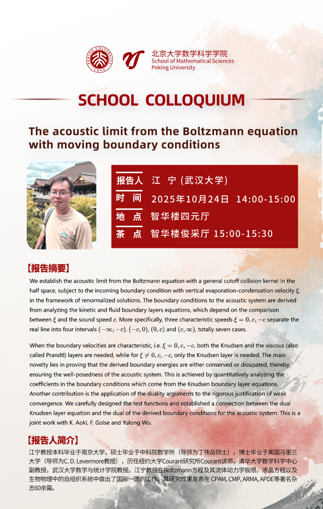 School Colloquium——The acoustic limit from the Boltzmann equation with moving boundary conditions