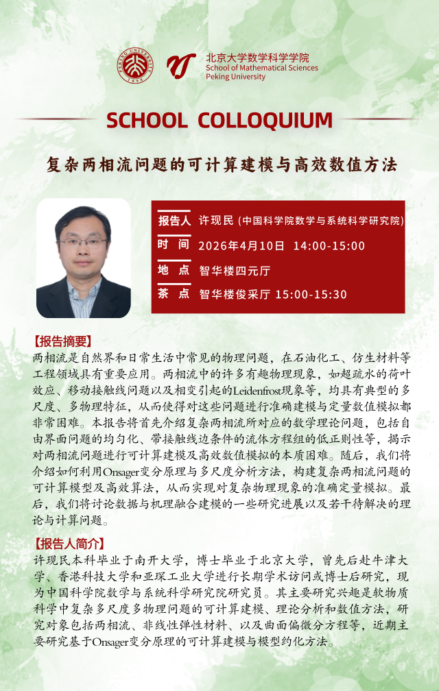 School Colloquium——复杂两相流问题的可计算建模与高效数值方法