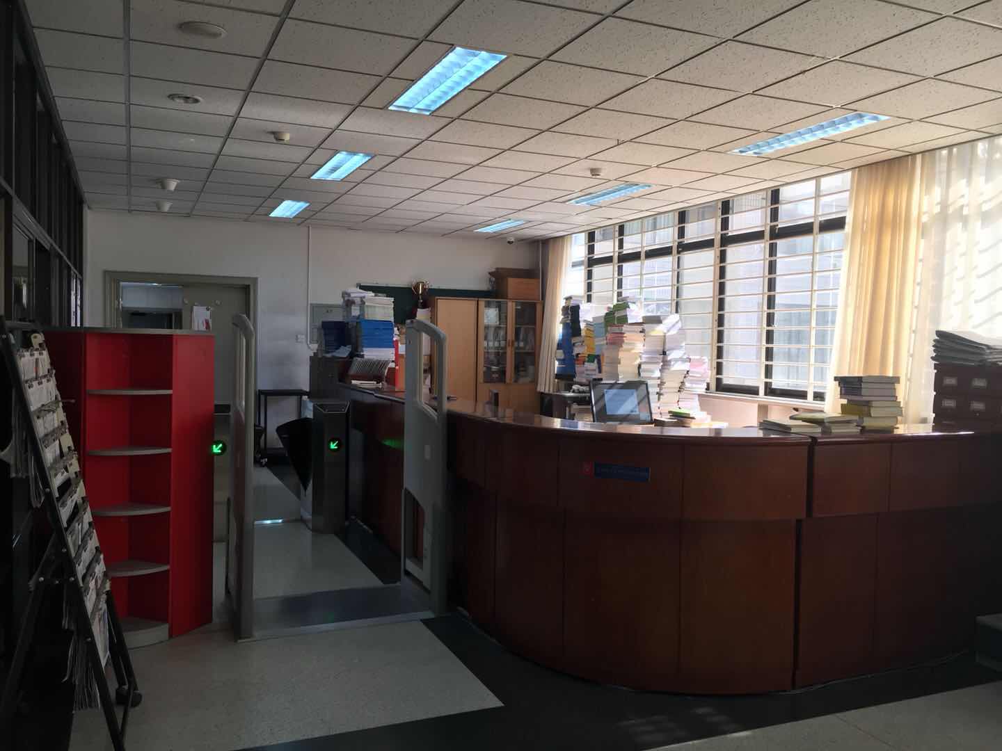 服务:数学图书馆面向全校师生开放,读者通过刷校园卡进馆。下图为馆舍入口和出纳台。
