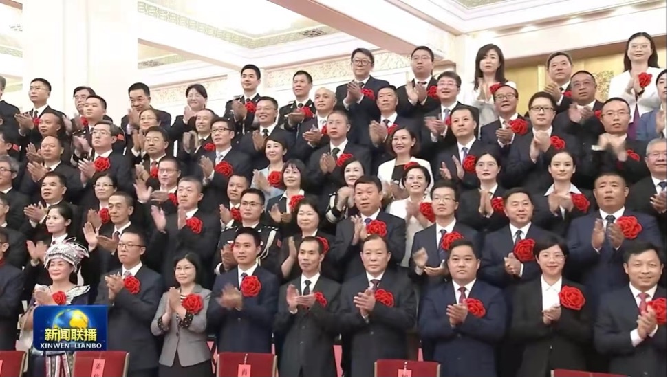 王敏瑶院友于表彰大会现场(新闻联播截图,六排右一)