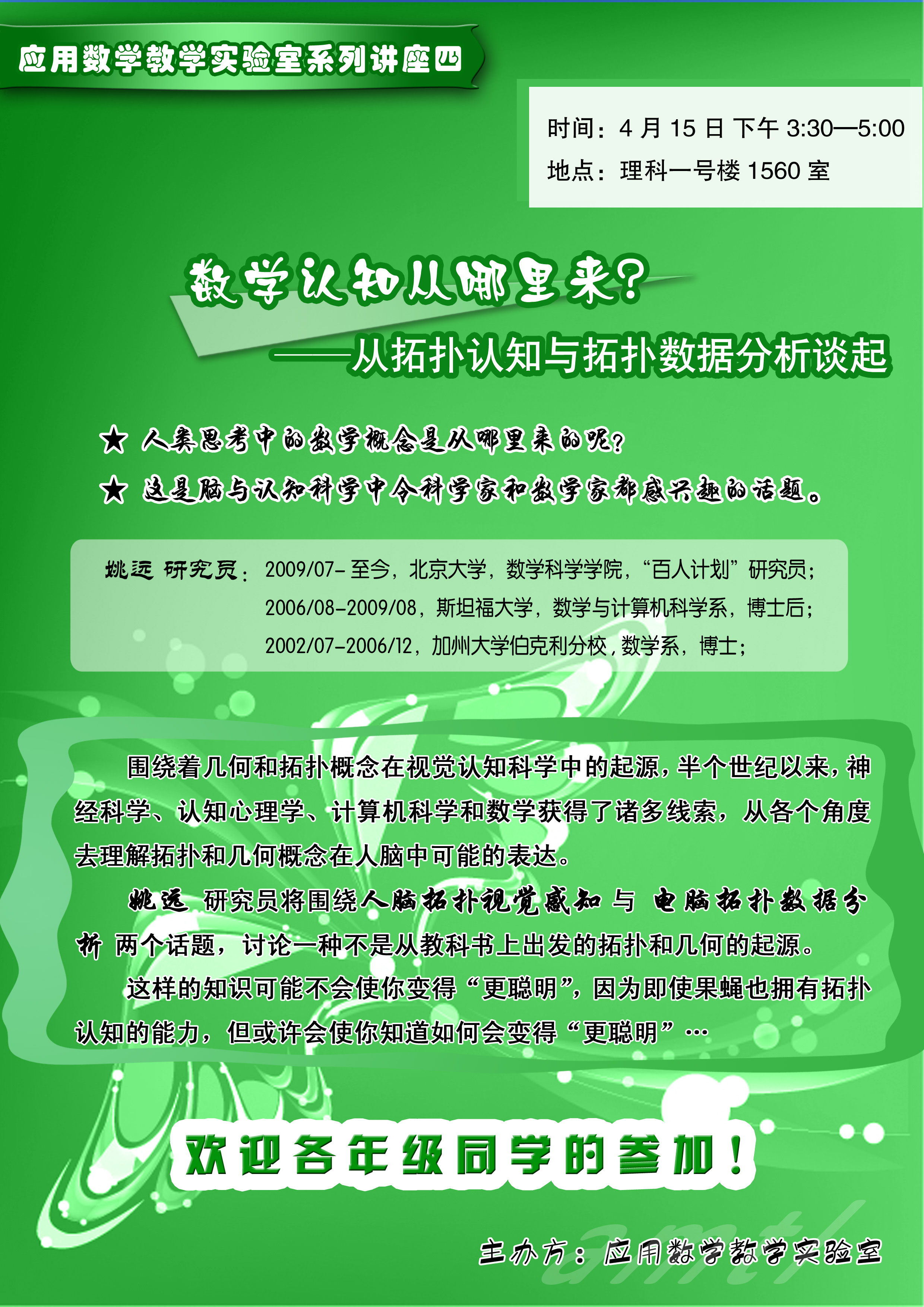 地 点:理科一号楼1560室