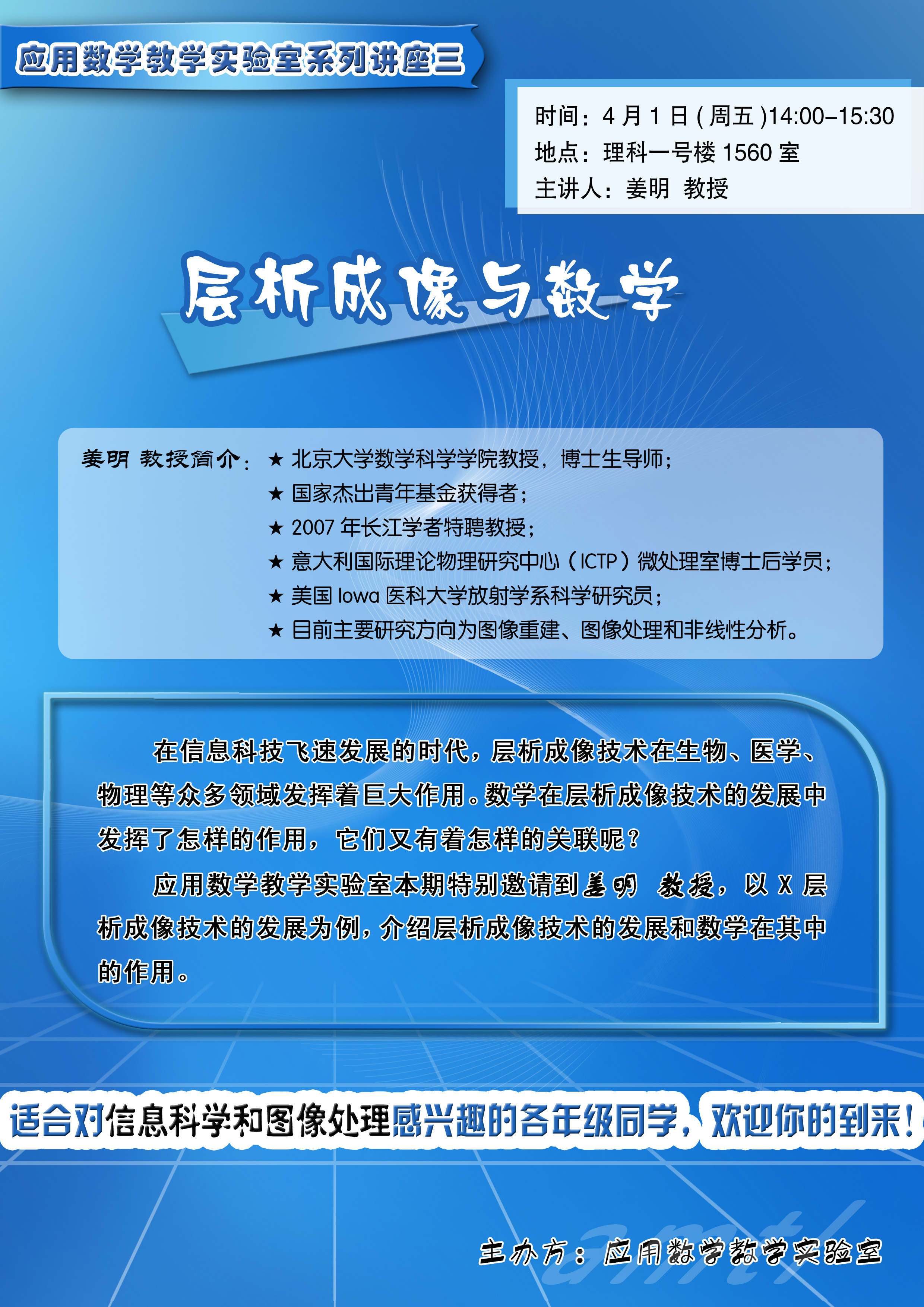 适合对信息科学和图像处理感兴趣的各年级同学,欢迎你的到来!