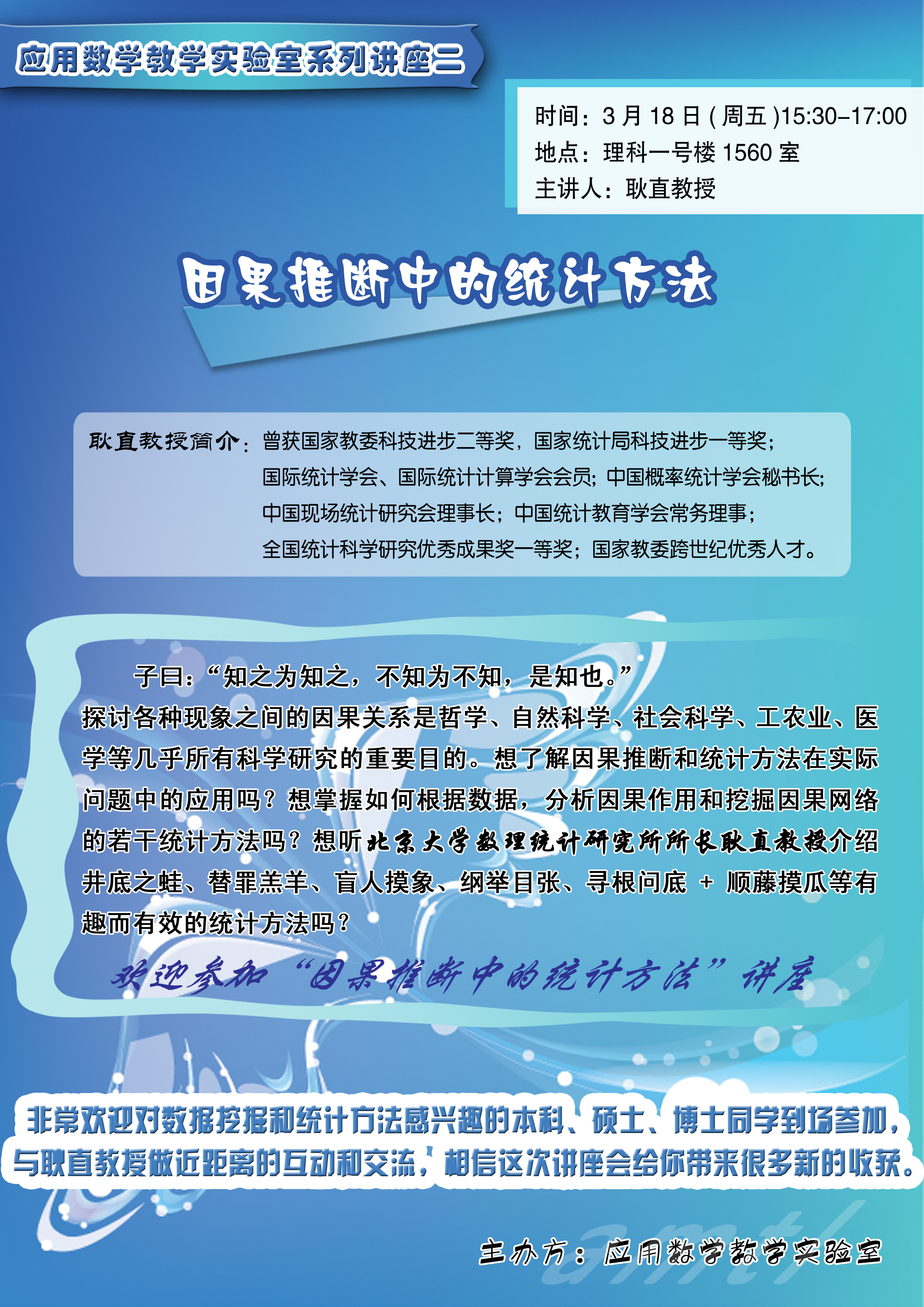推断和统计方法在实际问题中的应用吗?想掌握如何根据数据,分析因果作用和挖掘因果网络的若干统计方法吗?想听北京大