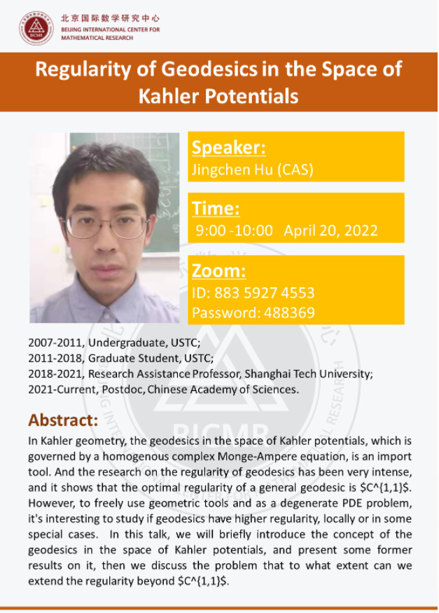 In Kahler geometry, the geodesics in the space of Kahler potentials, which is governed by a homogenous complex Monge-Ampere equation, is an import tool. And the research on the regularity of geodesics has been very intense, and it shows that the optimal regularity of a general geodesic is $C^{1,1}$. However, to freely use geometric tools and as a degenerate PDE problem, it's interesting to study if geodesics have higher regularity, locally or in some special cases. In this talk, we will briefly introduce the concept of the geodesics in the space of Kahler potentials, and present some former results on it, then we discuss the problem that to what extent can we extend the regularity beyond $C^{1,1}$.