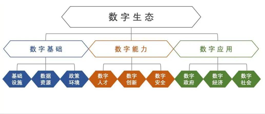 在他看来,数字经济与数字政府、数字社会密不可分。数字生态包括了国家和区域生态、产业和企业生态等形式。例如,欧盟属于国家生态,长三角城市群属于区域生态,而阿里系、腾讯系则属于企业生态。