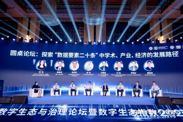 成果发布环节后,武汉大学教授马费成、湖南省人民政府参事吴金明等相关领域专家学者、企业精英在圆桌论坛环节,围绕“探索‘数据要素二十条’中学术、产业、经济的发展路径”展开对话;在主题报告环节,围绕城市智能化治理模式、指数工具助力数字中国建设的应用实践、数字化转型、数字生态政策等作主题分享,对我国“加快构建数据要素市场体系、全面提升数字生态治理能力,推动数字生态健康、有序、可持续发展”起到积极促进作用。