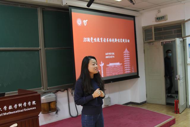 党员发展的详细流程,她鼓励大家要重视党性教育读书班的学习和考试,积极配合各个支部做好党员发展各项材料的准备,争取早日成为一名光荣的共产党员。她鼓励各位学员作为即将要入党的发展对象,也要加强理论学习,进行自我教育和自我反思,将初心和使命融入自己的理想和志向中去,落实到自己的学习和生活中来。