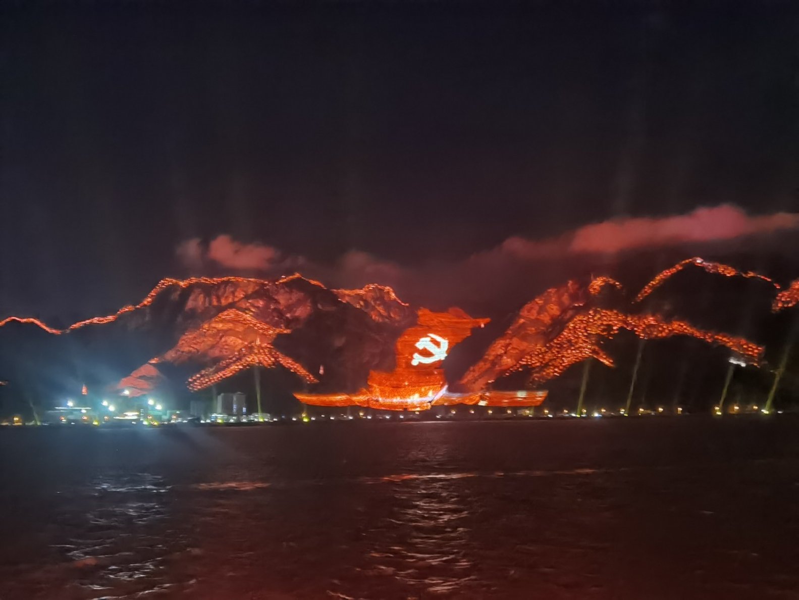 当晚,师生在瓯江之畔观看“光影闪耀瓯江,重温百年历史”光影展,开展了一场别开生面的党史学习教育。整个灯光秀分为峥嵘岁月、奋进时代、逐梦未来三个篇章,生动展现了百年大党的光辉历程和伟大成就。群山变身恢宏幕布,光影倒映在广阔江面,带领同学们跨越百年、感受百年辉煌。实践团成员吴宇阳分享感悟:“将党史学习与现代科技融合,山体灯光秀给人的感觉极其震撼,这也正如我们党的百年征程,轰轰烈烈、撼天动地,让人振奋!”
