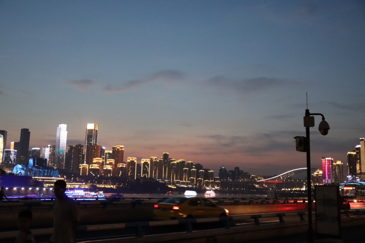 晚上,同学们来到南滨路欣赏重庆建设新面貌。夜晚,长江、嘉陵江两岸灯光亮起,江上金碧辉煌的邮轮往来不绝,重庆现代化建设取得的成就令同学们感到骄傲。美丽的江景旁,同学们总结了一天行程中的感悟与思考。