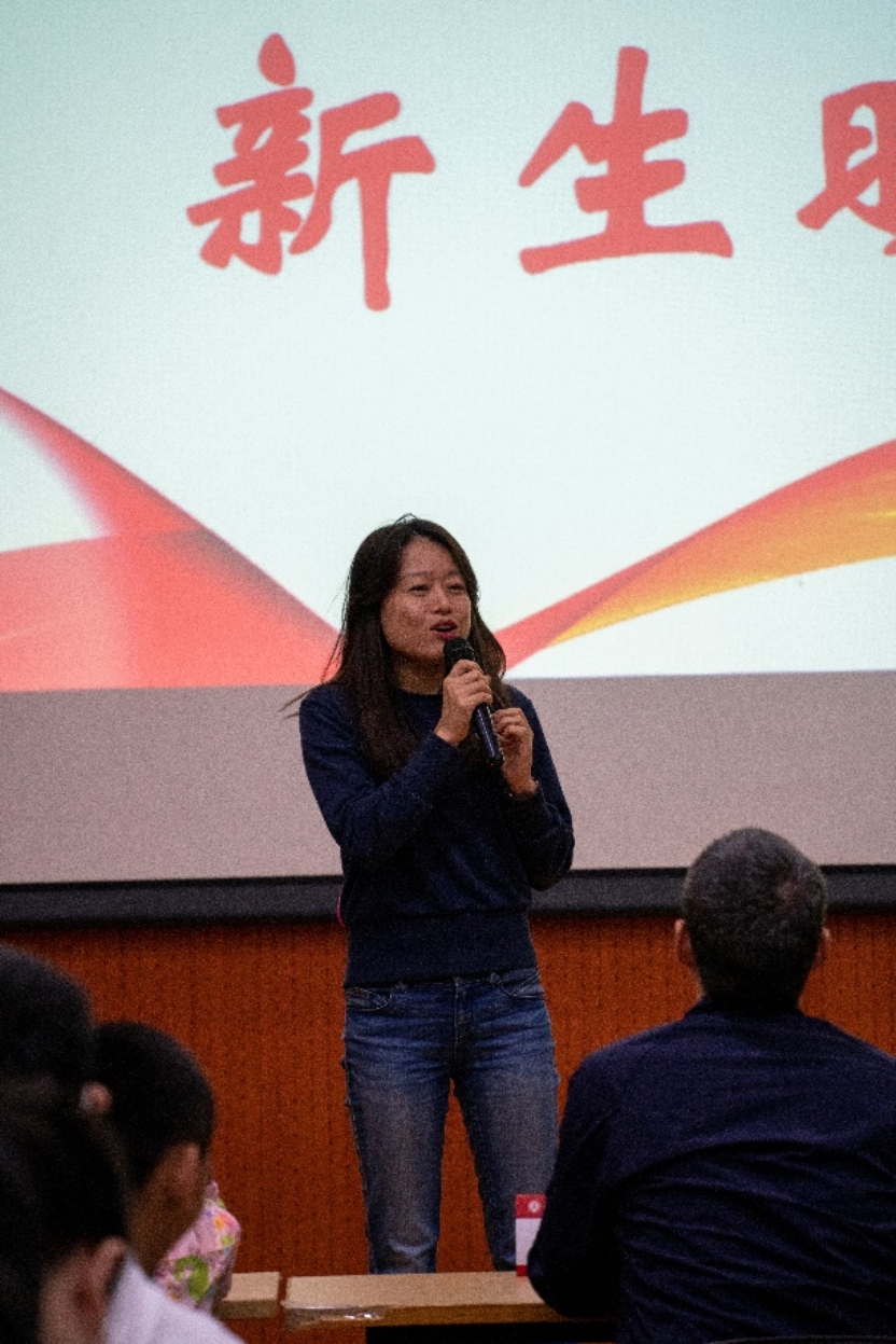 董子静在致辞中提出对新同学的期望,她鼓励同学在燕园四年生活中找到适合自己的道路,以现在为起点,开启绚丽多彩的人生,在学习和生活中都收获快乐、获得成长。