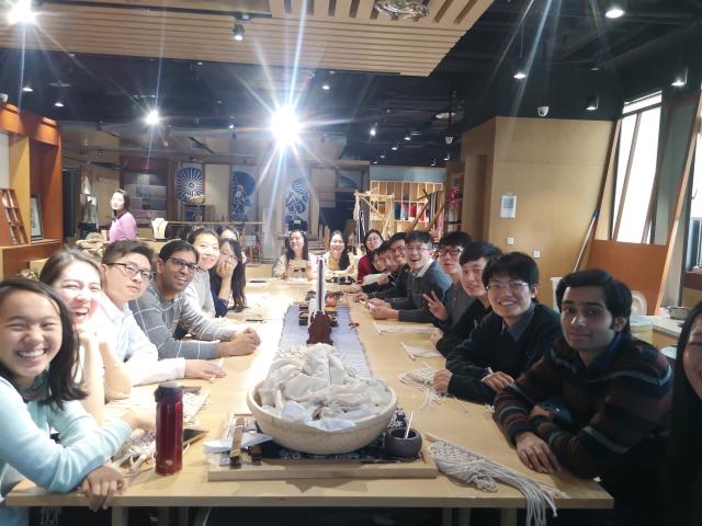 到达科技文化交流中心并在馆前合影留念后,大家就进入了交流中心开始了今天的参观体验。馆内设置有四个不同主题的活动空间,此次我们主要参观了位于四楼的“粹空间”。“粹空间”以中国传统文化之粹为主要内容,包括国学书院与非遗传承两大主题区。“粹空间”内陈列了各式各样的国粹精华,包括刺绣,织布,绣香囊以及扎染等工艺的过程和工具,令人目不暇接。