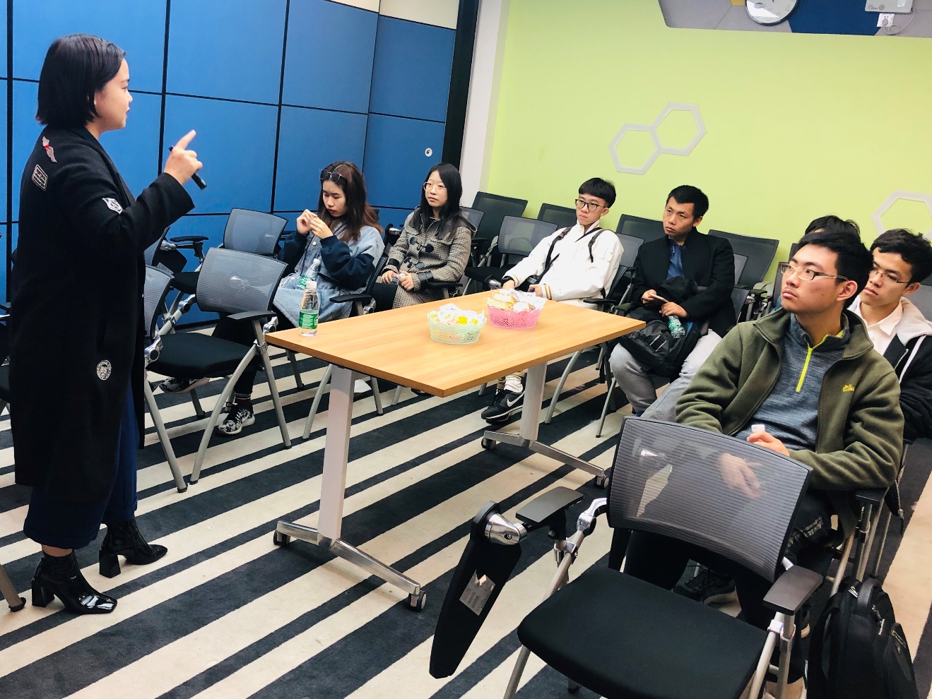 在参访过程中,由网校人力资源专员带领同学们参观公司整体的工作环境和氛围,不同岗位的分工及工作内容,带领同学观摩不同的直播间,向同学们介绍AI、AR、VR、绿幕直播等科技在K12在线教育中的应用。同学们在绿幕直播间体验网上授课,不同场景的切换吸引同学们纷纷尝试。同学们还体验了在线讲授课件,与网上的学生进行互动交流,解答学生们提出的问题,无延迟地与网上学生形成即时沟通。参观部分结束,紧接着由师资选聘部主管与大家分享在线教育行业的概况与现状,互联网技术在教育行业的深入应用,剖析了当前市场大环境,并从公司的角度给出求职与职业发展的意见和建议。在与负责招聘的主管交流时,同学们还就课程产品研发,直播技术的稳定性,行业未来发展方向等具体问题进行了请教与学习。同学们惊讶于在线教育的发展,同时表示自己对将来择业方向有了更清晰的规划。