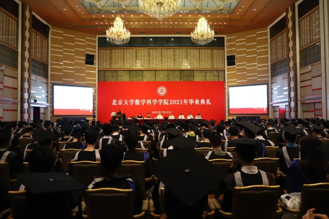 2021年毕业典礼于7月12日下午13:30在北京大学英杰交流中心阳光厅隆重举行。典礼设置了2个直播分会场,毕业生家人同步观礼。一场细雨如约而至,细细述说数学人的离别情思。
