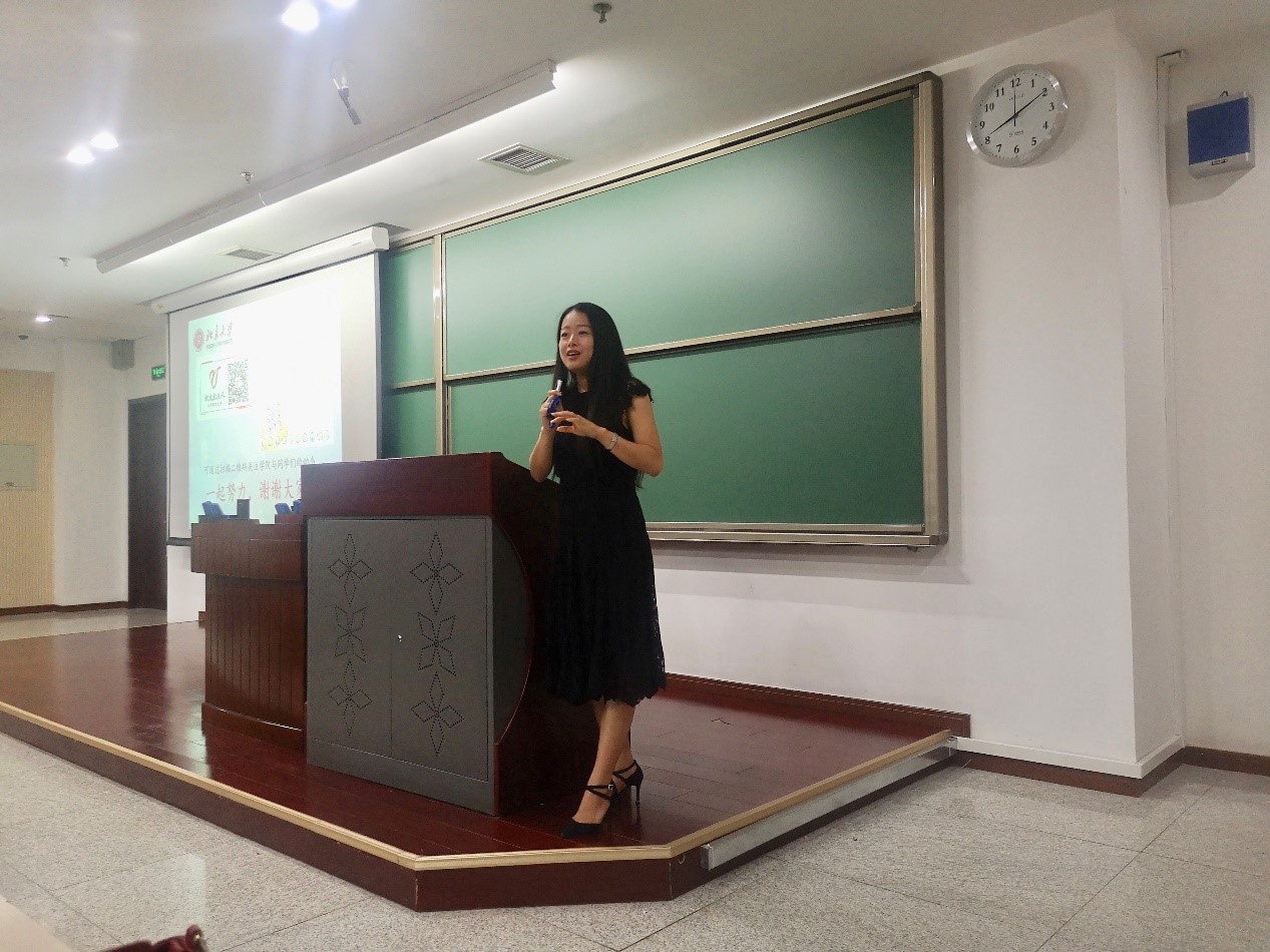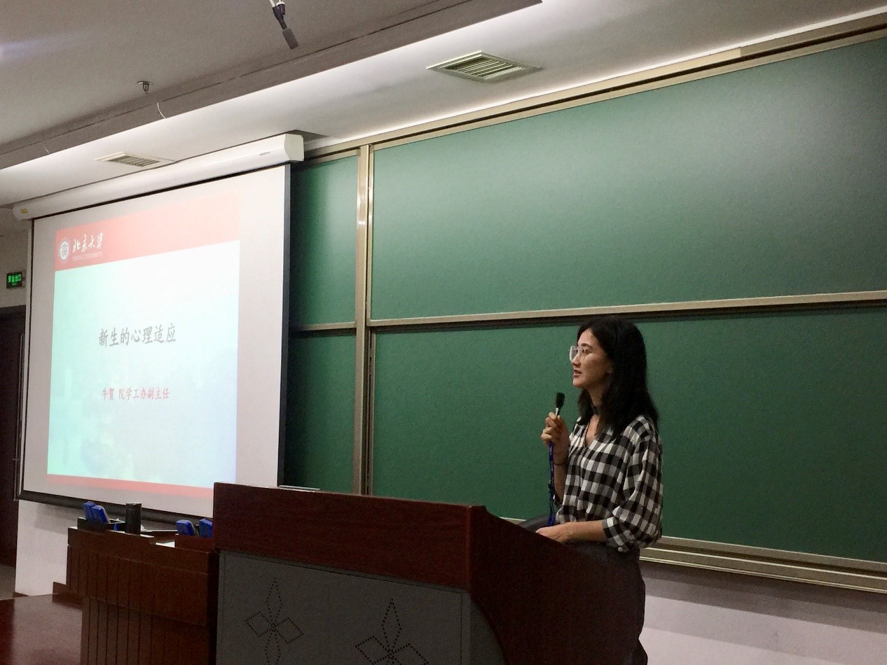院学工办副主任牛贺介绍了学生工作办公室概况及新生心理适应问题,希望家长积极引导孩子树立目标,培养孩子的主动性、自觉性、独立性,形成健康多元的价值导向。