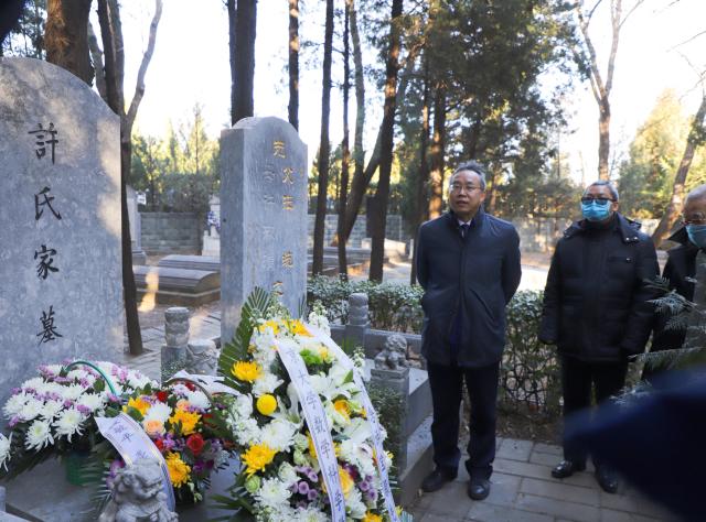和数学中心教师代表怀着崇敬的心情来此献花,就是为了表达我们对许先生的缅怀之情,追忆许先生为北京大学、为概率统计事业所做的贡献,学习并弘扬许先生等老一辈科学家献身科学的精神,继承老一辈数学家所开创的事业,共同把北京大学数学学科建设好,成为数学家心向往之的地方。希望今后大家能带着自己的学生们来这里为许先生扫墓,五十年后,一百年后这里仍将香火不断。