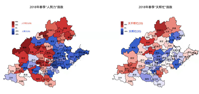 北大空气质量报告截图:2+66城市,2018年春季“人努力-天帮忙”地图