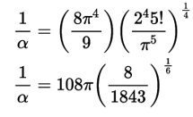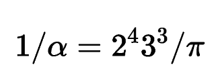 上述都是科幻小说的猜想,而在π伴随人类进化发展的历史上,许多人都是数字命理学的狂热分子,他们看到圆周率的重要价值,认为这个数字背后或许存在某种玄机。这个所谓的精细结构常数α与电磁力有关,是这些圆周率崇拜者所钟爱的对象之一。甚至诺贝尔奖得主,量子物理学家沃纳·海森堡一直猜测与电磁力有关的常数α与π的关系是: