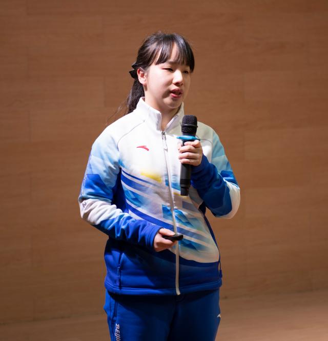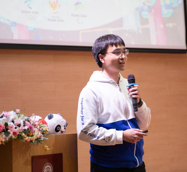 五名来自不同服务岗位的师生代表深情讲述了“守护”、“闪光”、“体验”、“突破”、“热爱”的冬奥故事,重温了工作中的难忘瞬间与深切感悟。专职辅导员、九华山庄驻地辅导员毋泽鹏分享了七十六天的闭环生活的点滴温暖,讲述了从“我”变成“我们”的家的故事,诠释了守护与成长。冬奥会开幕式演员、2018级本科生王艺纯讲述了参与《致敬人民》艺术表演的台前幕后,展现出普通人的闪光与各国人民的团结,传递了“一起向未来”的冬奥理念。测试赛志愿者、2020级本科生刘向益着重于冬奥盛会背后的体验,讲述了一名普通志愿者的平淡与责任,从平凡处彰显伟大。冬奥会冬残奥会志愿者、2019级本科生张滢心分享了在赛事服务和票务运营岗位工作的故事,作为岗位唯二志愿者的一员,面对观众时从手足无措转变为落落大方,体现出个人的自我突破。冬奥会冬残奥会志愿者、2020级本科生张一航细数了在冬奥场馆通信中心从测试活动到测试赛再到正式比赛前后跨度近一年的服务经历,尽管面临了种种困难和压力,但热爱可抵岁月漫长,对志愿事业的热爱支持着他和万千志愿者一起向未来。
