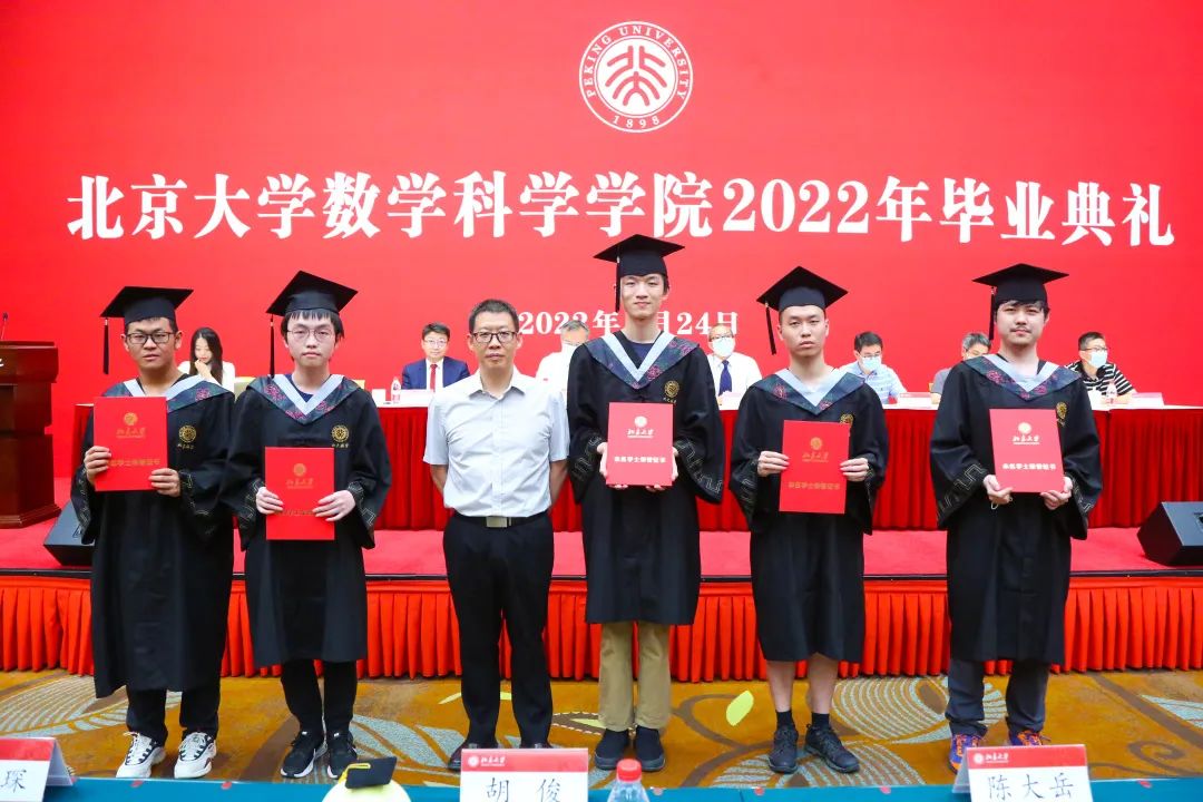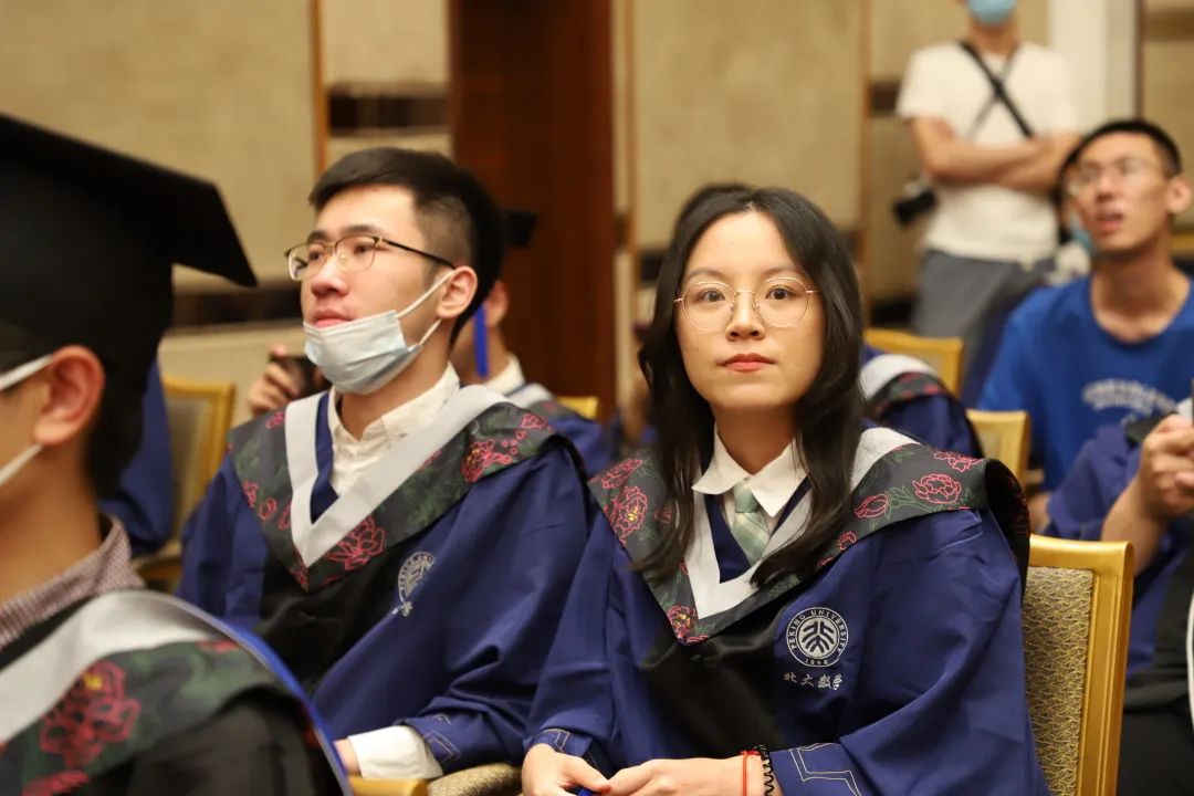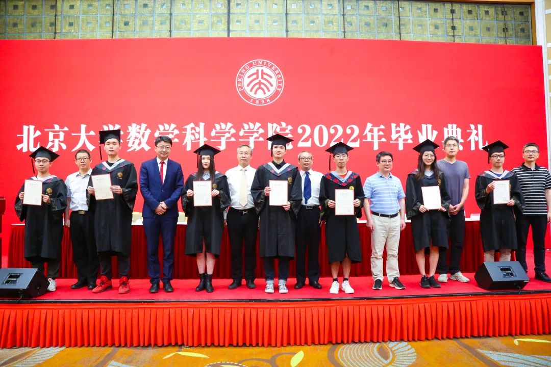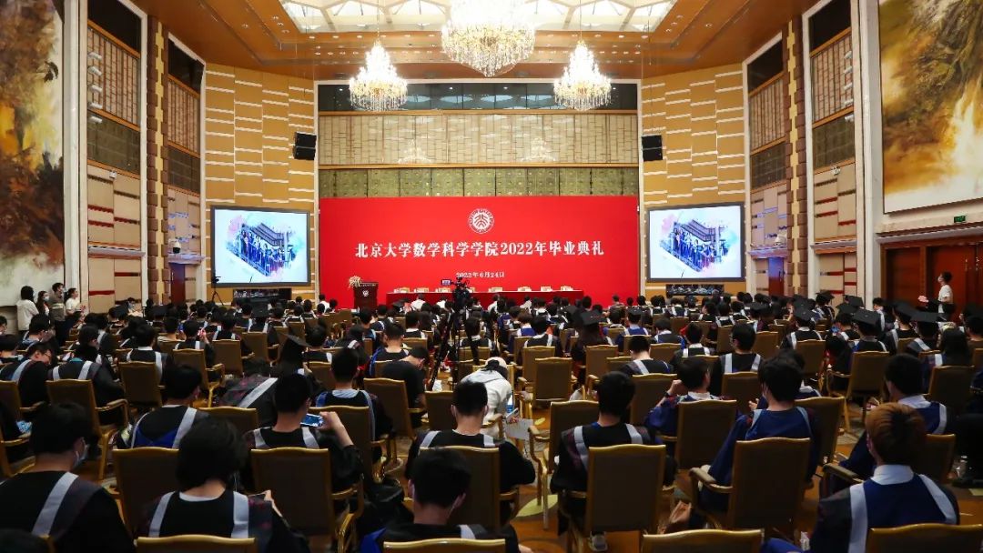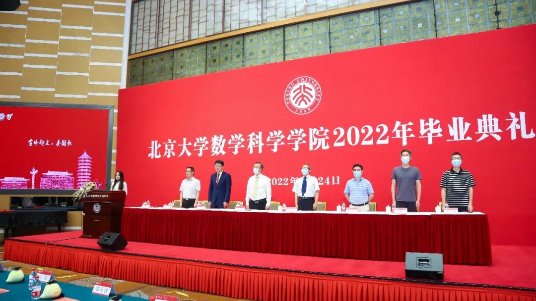 院长陈大岳教授,院党委书记胡俊教授,副院长章志飞教授、李若教授、刘若川教授,院党委副书记、副院长孙赵君老师,教师代表、数学系周蜀林教授,院友代表、全职公益人、金融数学系1995级本科生刘正琛先生,毕业班班主任老师们,以及部分2022届本、硕、博毕业生在现场参与了毕业典礼。受疫情影响,不能到达现场的毕业生和亲友们也通过燕园直播平台同步观礼。典礼由党委副书记董子静主持。