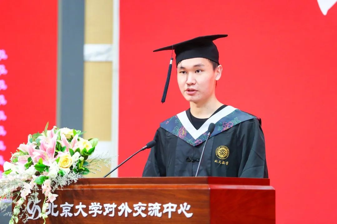毕业生代表、2019级博士研究生王炜飚在发言中细数在燕园的本硕博十年时光。成功的浪花、责任的激荡、困顿的暗流,共同构成了生活的湖水,北大红是青春的底色,数院人是生命的印记,向数院说再见,更有信心向世界和未来说你好。