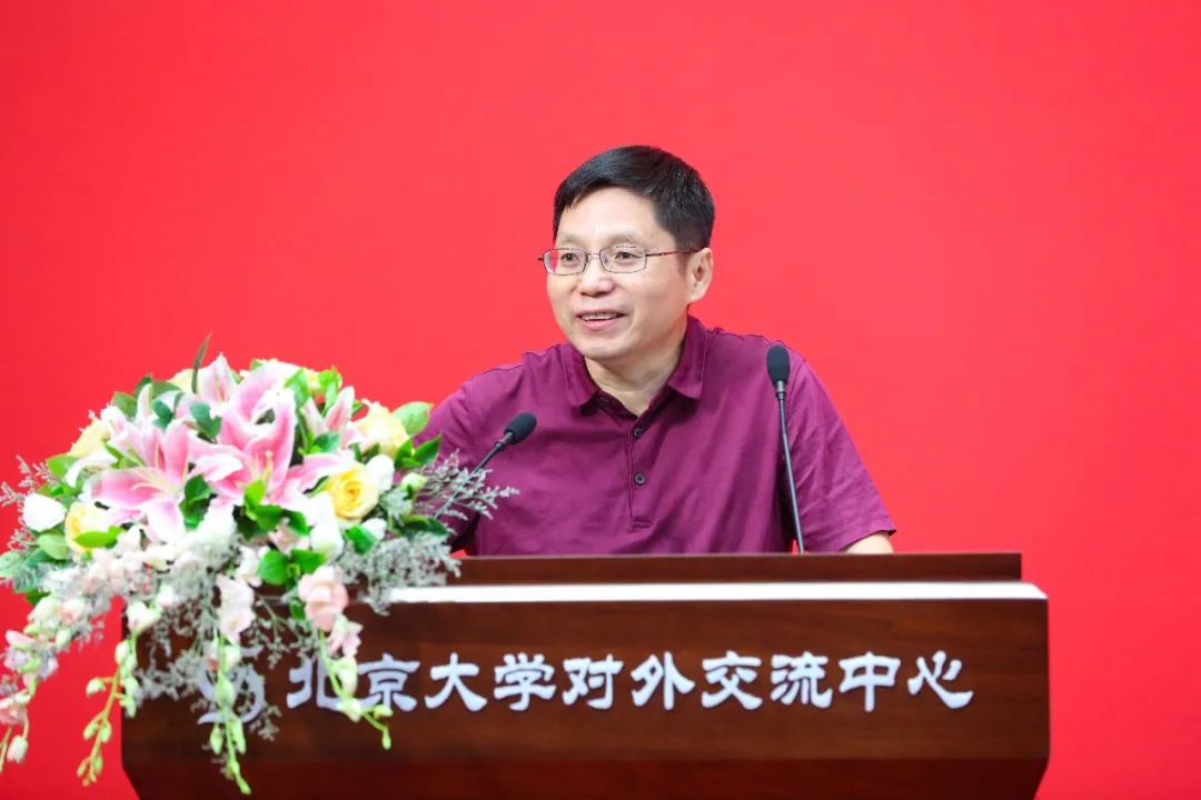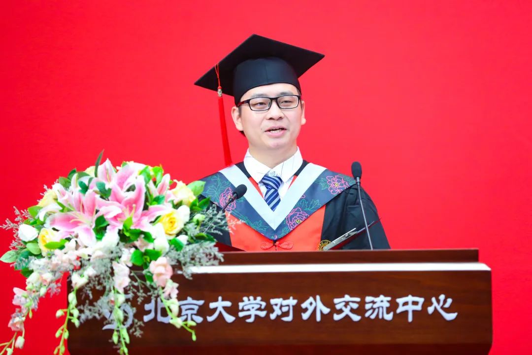 周蜀林作为教师代表发言,他鼓励同学们珍惜线上学习提高的自学能力,主动发现问题和解决问题,做自己的导师,勇敢闯荡外面的世界,并欢迎大家有朝一日回归燕园,建设北大数学。