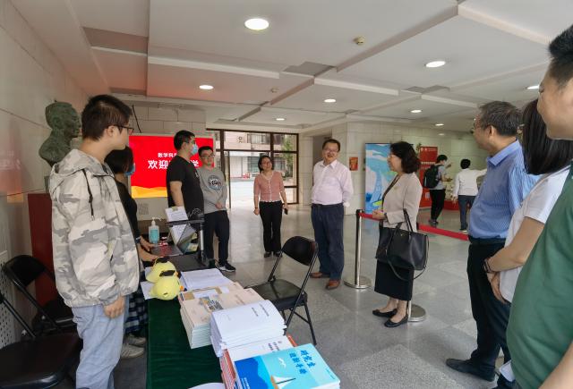 北京大学党委书记郝平,校长龚旗煌,副校长、教务长王博,副校长张平文,党委副书记、纪委书记顾涛,党委副书记、副校长宁琦等校领导先后来到数院迎新现场,慰问迎新志愿者,欢迎新生来到北京大学。郝平肯定了数院新生的精神风貌,并勉励同学们继续努力,勇攀高峰。同时,他走访数院本科新生宿舍,与在场的班主任、带班辅导员和新生同学们亲切交谈,关心同学住宿情况。