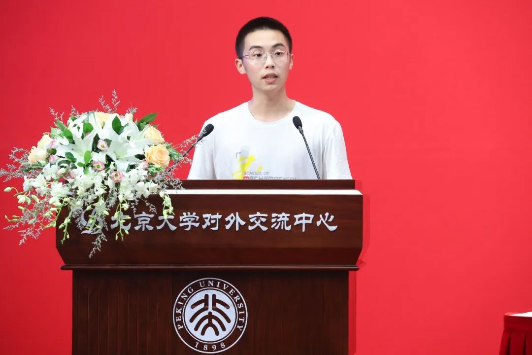本科生新生代表、2022级本科生牛子儒同学讲述了自己与数院结缘的故事,他从自己的成长经历讲述,表达了对北大、对数学的热爱;他结合开学后的经历,勉励同学们葆有热爱数学的初心,磨砺意志,不断探索,去追寻数学科学的边界,方能无愧北大数院人的荣光。