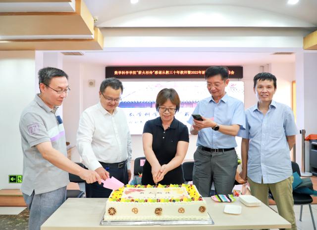 从教三十年教师一同切蛋糕